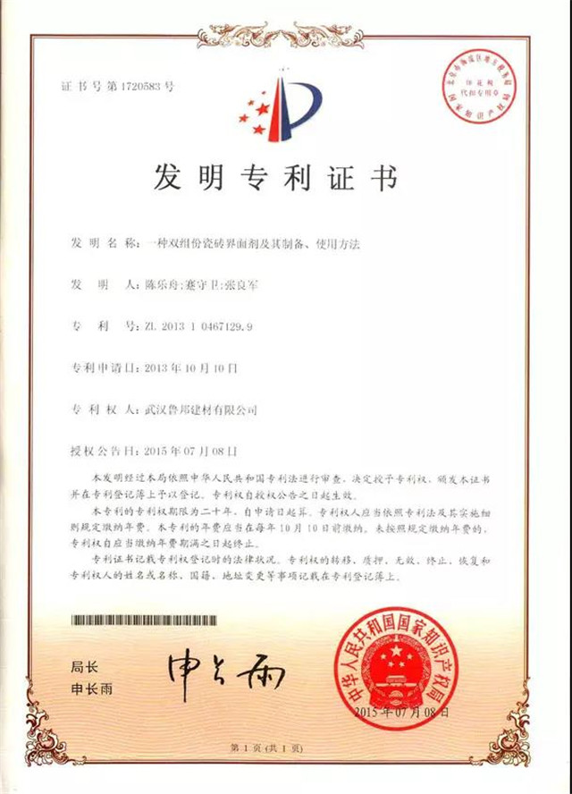 本發(fā)明的目的在于克服因現(xiàn)有瓷磚特別是玻化磚因吸水率低、界面光滑導(dǎo)致瓷磚脫落的問題,提供一種改善瓷磚界面性能和施工性能的雙組份瓷磚界面劑,提高了界面劑與瓷磚粘結(jié)強度。另外,在保證施工時間的同時,縮短了凝固時間,有效改善了施工性能,并保證了瓷磚的長期美觀性。