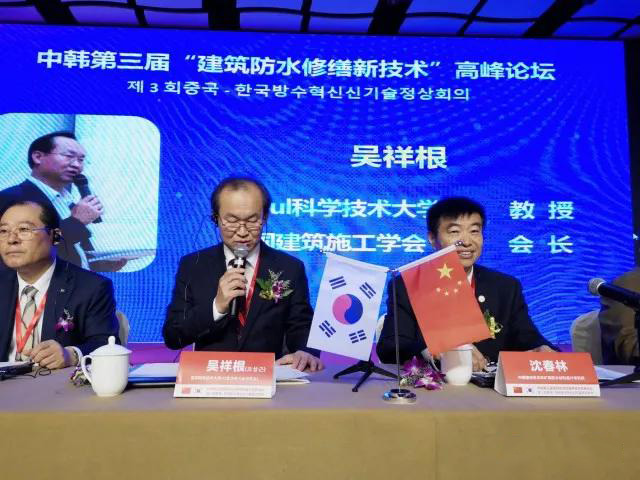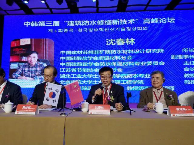 本次會議以“建筑防水修繕新技術(shù)”為主題,會議匯集中、韓兩國防水大咖齊聚一堂,韓國首爾科技大學(xué)吳祥根教授一行28位韓國防水專家蒞臨會議交流。中國建材蘇州非礦院防水材料設(shè)計(jì)研究所所長,湖北工業(yè)工業(yè)大學(xué)碩士生導(dǎo)師,享受國務(wù)院特殊津貼著名防水專家沈春林教授、韓國首爾科技大學(xué)防水技術(shù)研究中心吳祥根教授及國家相關(guān)部門領(lǐng)導(dǎo)先后發(fā)表重要講話,通過對當(dāng)前我國建筑防水修繕行業(yè)的分析,指出此次會議召開的重要性和必要性,并希望通過此次會議的召開,充分調(diào)動防水人的積極性,重新樹立對防水行業(yè)未來市場的信心并致力于將防水修繕市場做的更好。