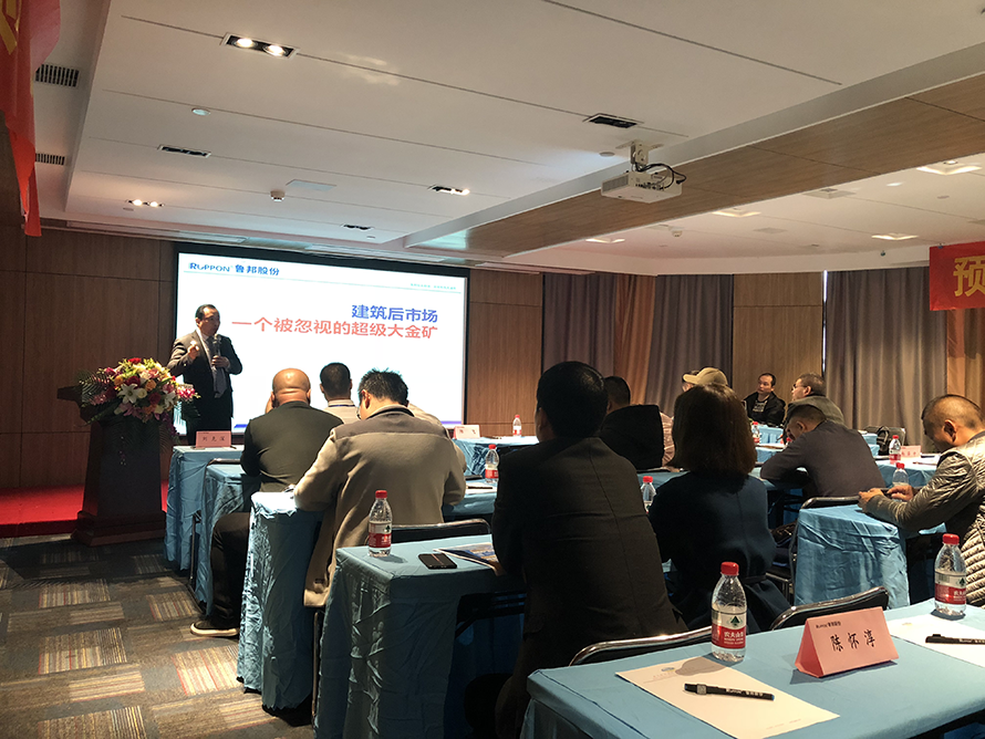 常務(wù)副總陳飛用了近90分鐘為大家全面而深刻的解析了防水修繕市場的背景、現(xiàn)狀和市場機(jī)遇,且就當(dāng)前的舊建筑物防水修繕闡明了我們的“三化”服務(wù)模式——產(chǎn)品專業(yè)化、施工標(biāo)準(zhǔn)化、售后保障化。報告了魯邦防水修繕服務(wù)中心三年的發(fā)展規(guī)劃,涵蓋技術(shù)研發(fā)、市場服務(wù)團(tuán)隊、施工技術(shù)團(tuán)隊及魯邦防水修繕服務(wù)中心覆蓋縣城達(dá)到1000家。