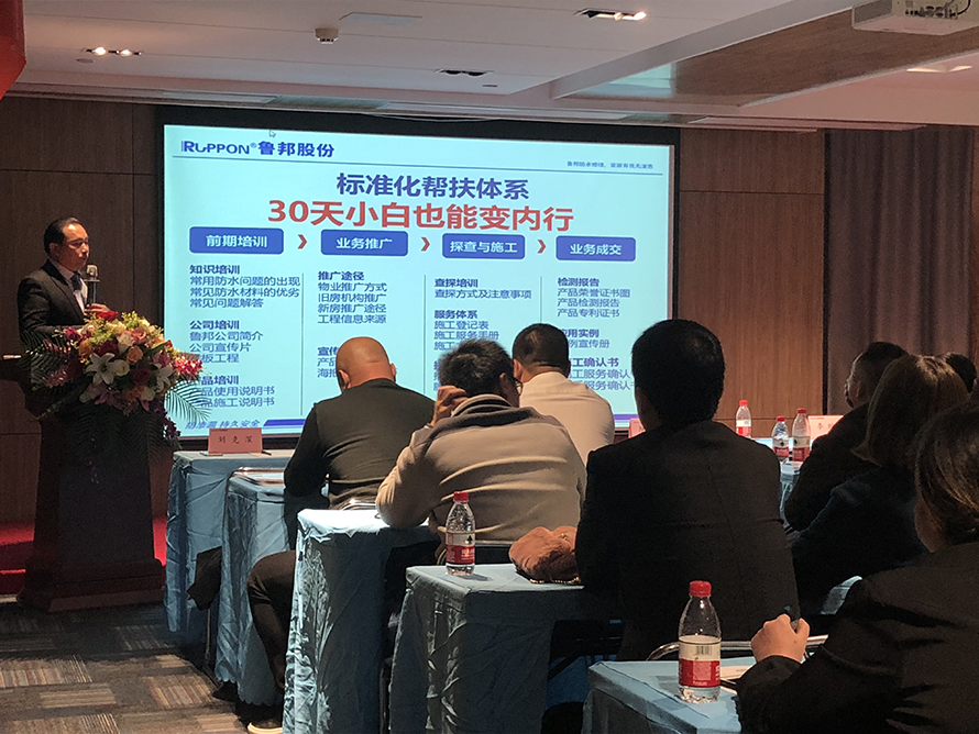 會議上,魯邦建材股份公司總經(jīng)理李時峰首先發(fā)表致辭并向與會者詳細(xì)介紹了魯邦:魯邦專注建筑整體防水十余載,一直秉承“科技創(chuàng)新,以市場為導(dǎo)向”的發(fā)展原則,為客戶提供優(yōu)質(zhì)的產(chǎn)品和服務(wù)。隨后魯邦股份副總兼魯邦防水修繕事業(yè)部總經(jīng)理高艷生就防水修繕產(chǎn)品及全系統(tǒng)防水修繕解決方案做了細(xì)致而全面的分享。