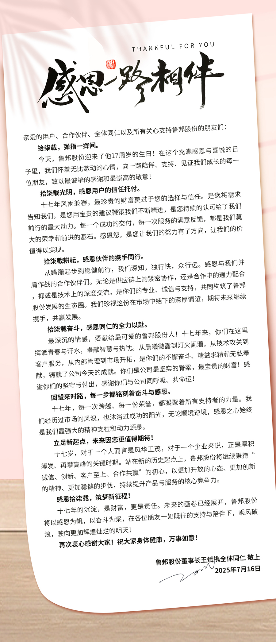 同行拾柒載,感恩有你!——熱烈慶祝魯邦股份成立17周年!